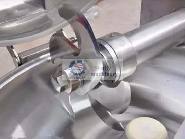 La machine à hacher et mélanger la viande équipée d'un hachoir à grande vitesse peut hacher la viande, les matériaux d'assaisonnement, la graisse et autres matières premières principales en un mélange haché. En même temps, par le mélange haché de la viande hachée et d'autres matières premières telles que l'eau, les restes de glace et les aromatisants sont mélangés pour former une pâte. La rotation à grande vitesse du couteau de coupe réduit le temps de mélange, afin de générer moins de chaleur dans les matériaux, ce qui permet de préserver la couleur naturelle, l'élasticité, le rendement et la durée de conservation des produits finis. Cette machine est largement utilisée dans l'industrie alimentaire pour l'assaisonnement et le mélange de viande, légumes et fruits de mer.
