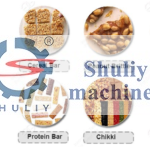 This peanut brittle production line could process rice, peanut, cashew nut, almond, sunflower seeds, sesame. It includes sugar melting, mixing, cutting, and packaging. Customers could also require to add pre-process equipment of red skin peanuts. There are two processing lines, peanut cereal bar plant and puffed rice cake plant. The cereal bar produced by this production line is delicious and healthy.